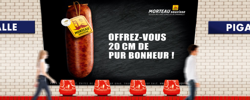 MORTEAU SAUCISSE, c’est aussi une entreprise qui met les pieds dans le plat ! Fervente défenseure de la saucisse, elle n’a pas hésité à afficher haut et fort son amour de la Morteau jusque dans les couloirs du métro. Avec sa campagne légèrement provoc’ « Offrez-vous 20 centimètres de pur bonheur », elle a non seulement défrayé la chronique mais aussi rendu notre saucisse préférée extrêmement populaire. Jusqu’à la capitale !